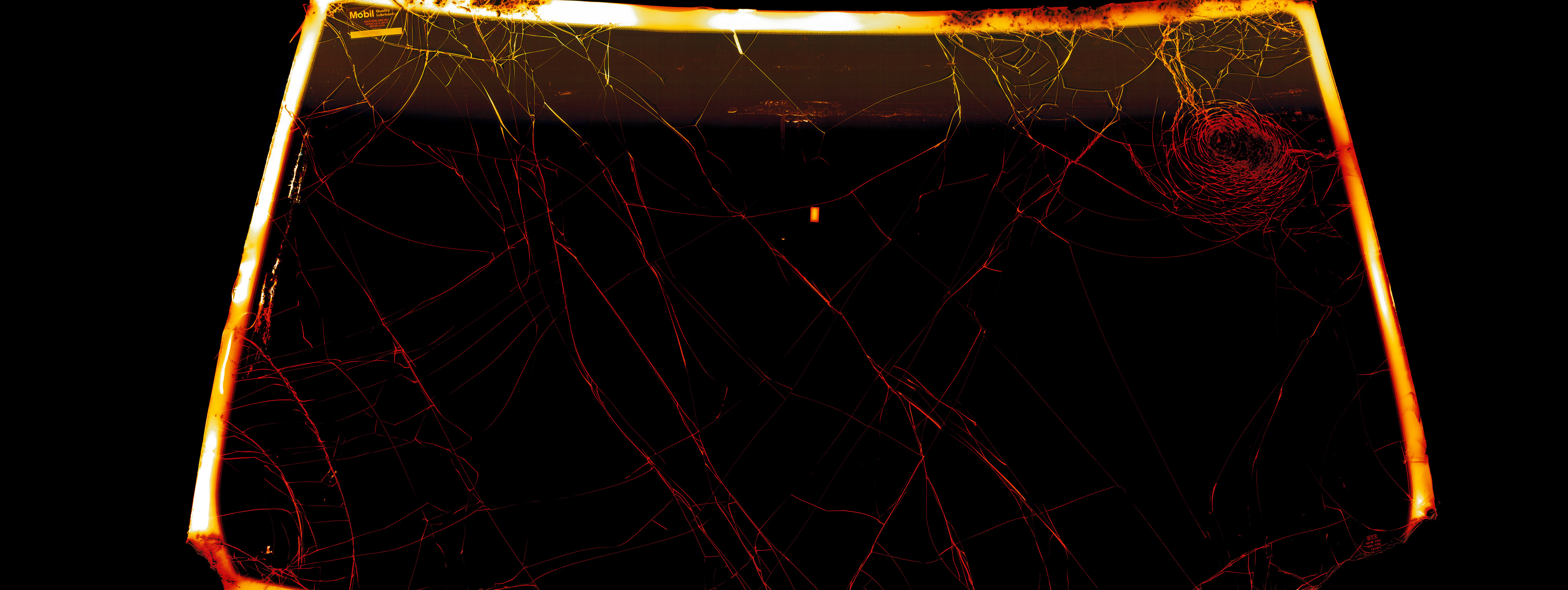 Lifesized photograms of broken windshields. Approximately 70" x 30" ea, ed. of 1.